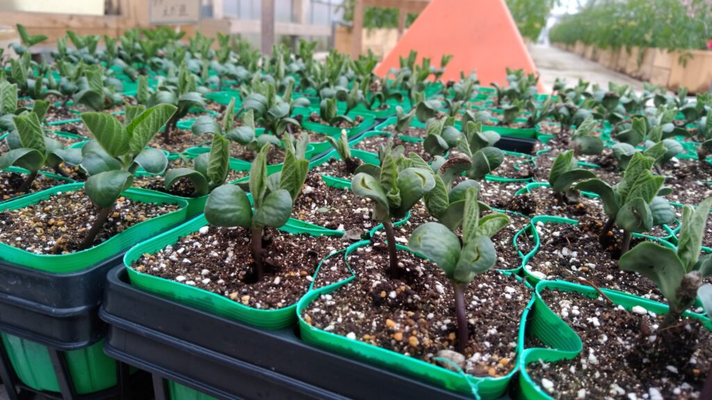 寒い中でも野菜達は元気ですね~💪💪種まきした枝豆も🌱が出てきました🎵発芽率9割ってところですね😄